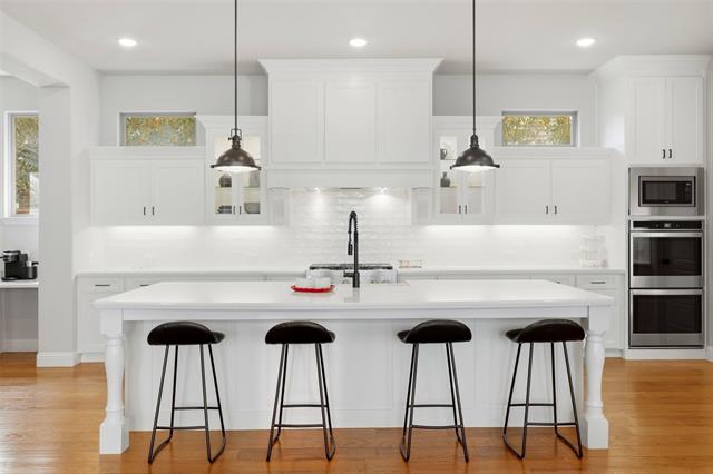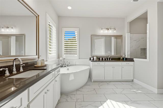 Beautiful DREES HOME in the highly sought-after Viridian Village community in Arlington! This stunning 4-bedroom, 4.5-bath home perfectly blends modern elegance with thoughtful design and functional living spaces. Step inside to an open-concept floor plan that seamlessly connects the main living areas, creating the perfect space for both entertaining and everyday living. The spacious living room features a beautiful fireplace and flows effortlessly into the modern-style kitchen, complete with double ovens, a walk-in pantry, abundant cabinetry, and a souring island with bar seating—ideal for morning coffee or casual dining. The split-bedroom layout offers privacy and flexibility. The luxurious primary suite on the first floor is a true retreat, showcasing a spa-like ensuite bath with a separate soaking tub, oversized walk-in shower and bench, and an oversized custom walk-in closet. Also on the first floor is an additional bedroom with its own private ensuite, perfect for guests or multi-generational living. Upstairs you’ll find two additional bedrooms, one of which features its own ensuite bath, along with a dedicated media room truly designed for movie nights and entertainment. Enjoy outdoor living year-round with the covered patio and outdoor fireplace, creating the perfect space to relax or entertain guests. Located in the prestigious Viridian Village luxury community, residents enjoy access to incredible amenities, scenic surroundings, and a prime Arlington location close to dining, shopping, and entertainment. This exceptional home offers the perfect combination of luxury, comfort, and modern design—a true must-see.