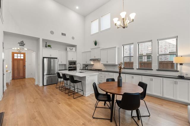 The backyard is an entertainer’s paradise, complete with covered and open patio spaces, a multi-level wood deck, built-in gas grill with sink, and high-grade artificial turf, all surrounded by lush rock and plant landscaping for a resort-style feel with minimal upkeep. Many outstanding upgrades inside and out, all within 15 minutes of DFW Airport. Viridian is a 2,000-acre master-planned community featuring five major lakes, 500 acres of waterways and wetlands, miles of trails, a sailing club, multiple parks, a dog park, playgrounds, and more. Recognized by the Audubon Society with direct access to River Legacy Park. The resident-only Viridian Lake Club, styled in a Mediterranean design, includes five pools and a picturesque amphitheater.