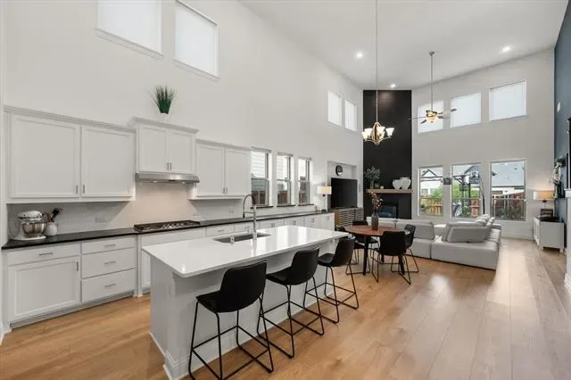The backyard is an entertainer’s paradise, complete with covered and open patio spaces, a multi-level wood deck, built-in gas grill with sink, and high-grade artificial turf, all surrounded by lush rock and plant landscaping for a resort-style feel with minimal upkeep. Many outstanding upgrades inside and out, all within 15 minutes of DFW Airport. Viridian is a 2,000-acre master-planned community featuring five major lakes, 500 acres of waterways and wetlands, miles of trails, a sailing club, multiple parks, a dog park, playgrounds, and more. Recognized by the Audubon Society with direct access to River Legacy Park. The resident-only Viridian Lake Club, styled in a Mediterranean design, includes five pools and a picturesque amphitheater.