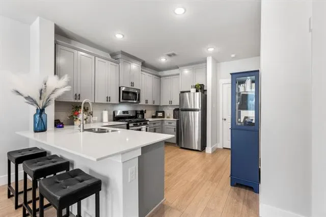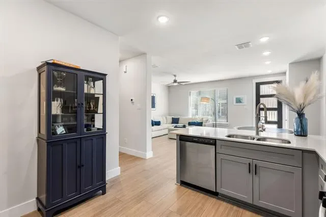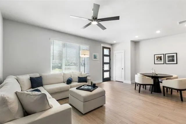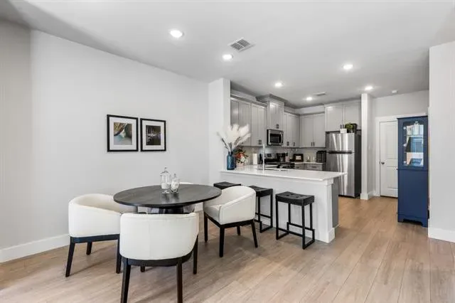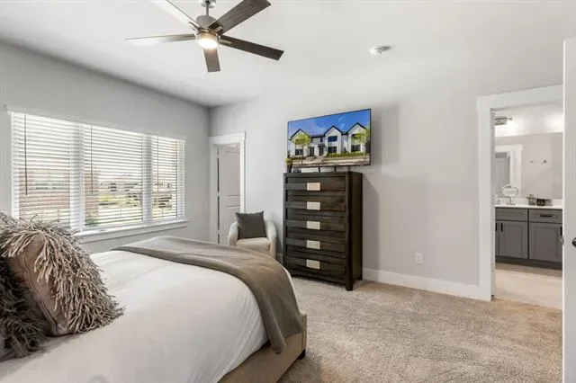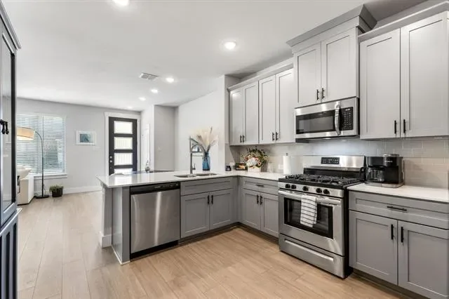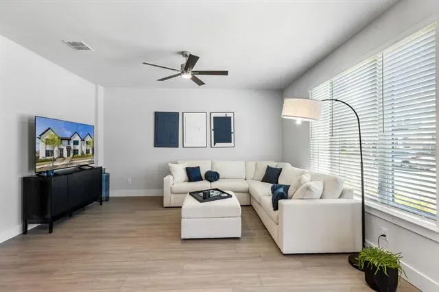 Welcome to luxury townhome living in the highly sought-after Viridian community in Arlington. This newly built 2-bedroom, 2.5-bath residence offers a stylish and functional floor plan designed for comfort and modern living. The heart of the home is the beautifully appointed kitchen, featuring sleek gray cabinetry, quartz countertops, stainless steel appliances, and a 5-burner gas range, perfect for everyday living and entertaining. A spacious walk-in pantry ensures abundant storage, and the refrigerator is included for added convenience. The open layout flows effortlessly into the living and dining areas, creating a bright and inviting atmosphere. Upstairs, the thoughtfully designed layout offers privacy for both bedrooms, while the primary suite provides a relaxing retreat. The home also includes an attached two-car garage, offering secure parking and additional storage. Located just minutes from some of Arlington’s most exciting destinations, including AT&'T Stadium, home of the Dallas Cowboys, Globe Life Field, home of the Texas Rangers, Six Flags Over Texas, and Six Flags Hurricane Harbor, you’ll enjoy easy access to world-class entertainment, dining, and recreation. Residents of Viridian enjoy an exceptional resort-style lifestyle with amenities including scenic lakes, a marina, tennis courts, community pools, parks, playgrounds, and even a beach area, all designed to create a vibrant and active community. This is a rare opportunity to enjoy low-maintenance luxury living in one of Arlington’s premier master-planned communities.