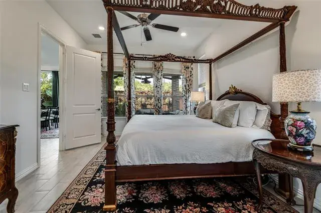 Welcome to The Elements 55+ at Viridian, where elegance meets effortless living. This beautifully maintained 1,823 sq. ft. home offers an open living area overlooking a peaceful green space that will never be developed. The gourmet kitchen features double ovens, granite countertops, and modern finishes, with a spacious dining area perfect for entertaining. Three bedrooms include one ideal as a home office. Enjoy custom window coverings, storm doors on the front, Everlights programmable exterior lighting, and a gardener’s dream backyard. This lock-and-leave home offers low-maintenance living with easy access to major highways, Dallas, and Fort Worth. Community amenities include pickleball, fitness center, trails, pool with grilling area, and active social events.