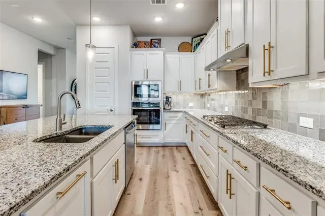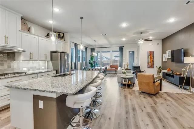 The heart of the home is the impressive kitchen with a large granite island that overlooks the living room and cozy fireplace, creating an ideal layout for everyday living and entertaining. Thoughtful upgrades include updated kitchen hardware and an Alpha custom modular storage system in the closets, laundry room, and garage for enhanced organization and functionality. Enjoy relaxing views of the covered backyard and garden, providing a peaceful outdoor retreat.Conveniently located near Arlington’s Entertainment District, including AT&'T Stadium, Globe Life Field, and Texas Live, with easy access to Highway 360, I-30, and 183. Residents enjoy resort-style amenities such as pools, parks, fire pits, clubhouse, fitness center, walking trails, and a vibrant calendar of social activities.This home offers comfort, convenience, and an exceptional lifestyle all in one.
