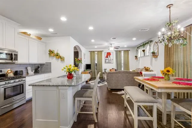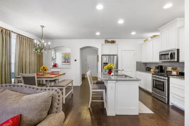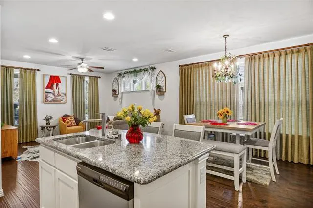 Beautifully maintained 3 bedroom, 2.5 bath townhome in the award winning master planned community of Viridian. This end unit offers abundant natural light, added privacy, and a charming front porch. The open concept layout features wood flooring, custom window treatments, and a spacious kitchen with ample counter space and storage. The primary suite provides a private retreat with a huge walk in closet and spa like bathroom, while two additional bedrooms offer flexibility for guests or a home office. Enjoy resort style living with access to multiple pools, tennis and pickle-ball courts, lakes, a sandy beach, sailing center, parks and miles of walking and biking trails. Conveniently located in the heart of DFW with easy access to DFW Airport and major highways, plus direct access to River Legacy Park.