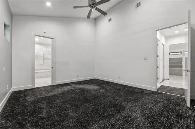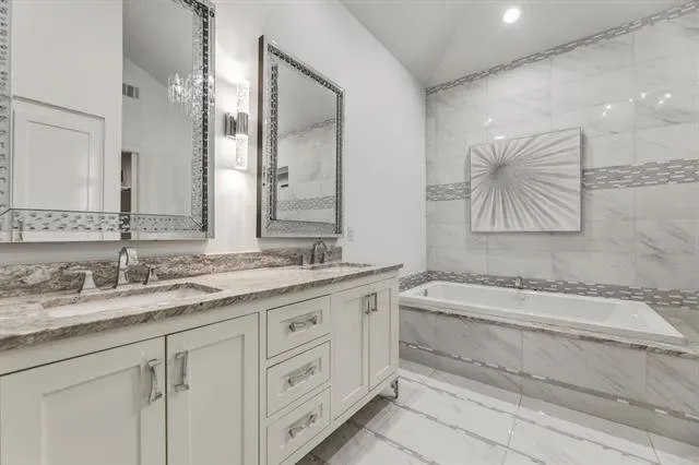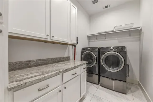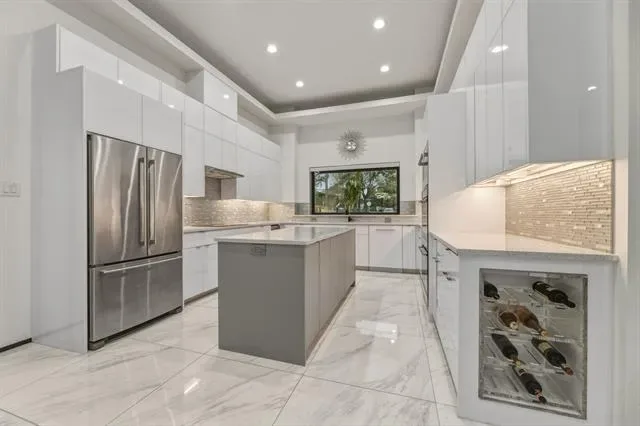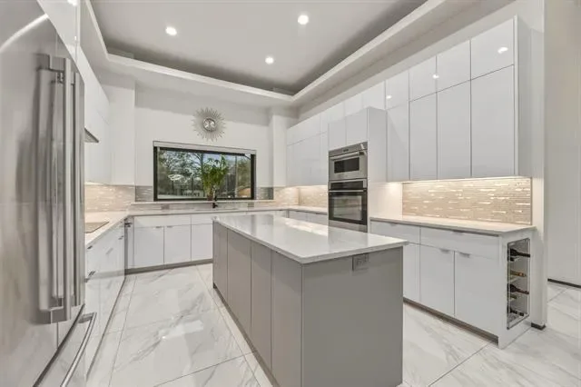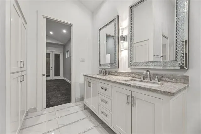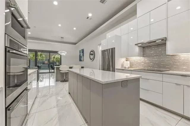 Custom home priced to impress, 1515 N Fielder seamlessly blends luxury, convenience, and space for multi-generational living. This thoughtfully designed home features dual primary suites on opposite sides of the property, each with private ensuite bathrooms, walk-in closets, and direct access to the backyard retreat. The open-concept layout showcases an oversized, commercial-grade kitchen with dual 6-foot islands, built-in wine fridge, double ovens, and a walk-in pantry—perfect for any chef. The spacious laundry room offers ample storage, folding counters, and easy access to cleaning tools for everyday functionality. Designed for entertaining, the backyard is your very own oasis. Premium Andersen patio doors lead to a screened-in patio with surround sound system, ceiling fans, fire pit, and electric retractable screens for year-round comfort. The expansive smart pool is enhanced by a cascading water element, volleyball area, and hot tub seating, all framed by Mediterranean palms. A putting green with mini golf features completes this private outdoor retreat, enclosed by an 8-foot composite privacy fence. The front exterior showcases a modern blend of stucco, stacked stone veneer, and metal detailing, complemented by an iron-gated luxurious circular driveway. Ideally located just minutes from AT&'T Stadium, Globe Life Field, Texas Live, UT Arlington, major highways, and DFW Airport, this home offers both privacy and accessibility on an oversized 0.34-acre lot. Additional highlights include energy-efficient windows, spray foam insulation, tankless water heater, smart gate, and sprinkler system for easy maintenance of property grounds.