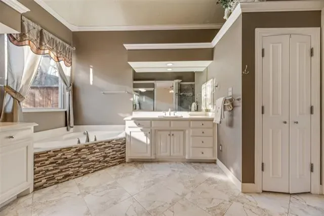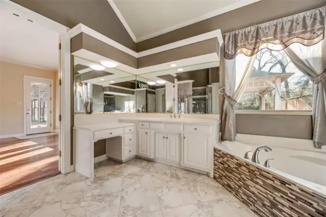 Custom 4 Bed, 3 Bath and 3 CAR GARAGE w a private park like backyard! Located on a tucked away court and sitting on a serene treed lot, this beautiful home offers tranquility w open views of the Texas sky. A soaring ceiling w rich hardwood flooring welcomes you into the spacious entertaining areas. The flexible Living-Dining spaces can be enjoyed separately or combined into one large gathering area. The heart of the home features a warm family great space, complete w an open Kitchen, generously sized Bfast area, and cozy Den w fireplace. The Kitchen is designed to impress w custom ctops and cabinetry, newer SS Appliances including built in double ovens and walk in pantry. Retreat to the Primary Suite which includes hardwood flooring and has a perfect view of the gorgeous backyard. The luxurious Primary Bath features a glass framed walk in shower, soaking tub, extended dual vanities and a huge walk in closet. A 2ndary Bedroom downstairs provides flexibility and would make the perfect guest suite or office along w a full Bath that adjoins. Also located dowstairs is the full size laundry room, complete w cabinets, a broom-utility cabinet and space for a full size fridgr w waterline already installed.. The grand staircase leads to the 2ndary Bedrooms, both w large walk in closets and a walk through Bath. Also upstairs is the walk in attic space w extended storage.The 3 CAR GARAGE has a 220 RV hookup. Step outside into your private backyard sanctuary where mature trees, beautiful landscaping, and fountains create a peaceful setting to enjoy from the covered back porch. Enjoy the privacy of a property bordered by 2 estate lots, backing up to an 8 plus acre estate… a rare exclusive find. Items of note that ADD value: New Roof in 2025, New AC in 2023, radiant barrier, many mature trees, hot tub and zoned for Martin High School. This home offers a tranquility setting while conveniently located close to major freeways, shopping, dining, entertainment and city parks.