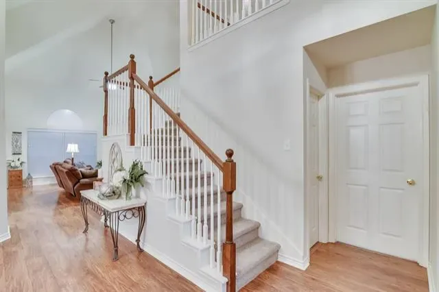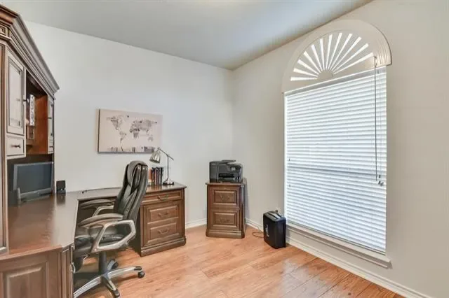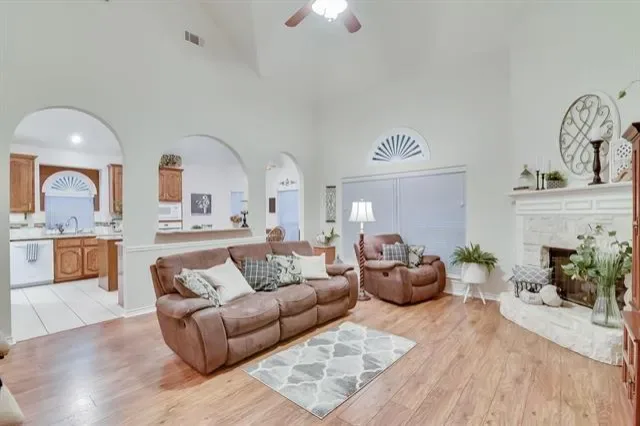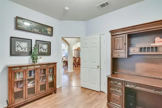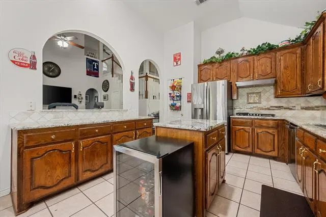 Welcome Home. This gorgeous 4-bedroom, 2.5-bath home with 2 Living areas, Office and Gameroom area is packed with features you will absolutely love. Sitting on a beautiful corner lot with stunning curb appeal, this property checks all the boxes. Step inside and you’re greeted by a grand layout with vaulted ceilings, a formal living room, formal dining area, and a private office. The open floor plan and abundant natural light keeps everything flowing and feeling super spacious throughout. The island kitchen is a real showstopper with updated stainless steel appliances, including a double wall oven, dishwasher, and refrigerator, all WiFi ENABLED APPLIANCES you have the option of controlling remotely, to let you start dinner or manage chores before you get home. Plus, you’ll have loads of counter space and storage to keep everything organized. The Breakfast Nook provides access to the back covered patio and is open to the Kitchen and Living Room. The Living Room, anchored by a gas fireplace, will easily accommodate all your furniture needs. The first floor Primary Bedroom suite is a true retreat featuring dual sinks, a separate shower, garden tub, and a huge 7 by 10 ft walk in closet. A separate Laundry Room, and convenient Half Bath round out the first floor. Heading upstairs, you’ll find three large bedrooms, full bathroom and a fun gameroom loft area. Here’s where it gets even better..THIS IS A FULLY UPDATED SMART HOME with smart light switches, dual-zone smart thermostats, smart smoke and CO2 detectors, smart locks, and a doorbell camera. Everything’s already set up for you to manage quickly and easily. Outside, the large covered back patio and beautifully landscaped yard with mature trees are ideal for relaxing or entertaining. You’re just a few minutes from Lake Arlington and tranquil community dock and park. Easy highway access for commuting. Abundant shopping and entertainment areas just minutes away. Schedule your showing today! You won’t be disappointed.
