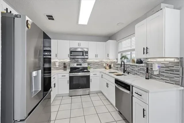 Welcome to this beautifully updated and lovingly maintained home, where comfort meets thoughtful upgrades in all the right places. Offering 3 bedrooms, 2.5 bathrooms, and a 2-car garage, this home provides a functional layout with inviting spaces perfect for both everyday living and entertaining. Step inside to discover updated flooring throughout the main living areas, creating a clean, modern feel that flows seamlessly from room to room. The heart of the home is the stunning, fully updated kitchen—designed to impress with stylish finishes, stainless steel appliances, and a layout that makes cooking and gathering effortless. Upstairs, you’ll find spacious bedrooms, including a well-appointed primary suite featuring updated tile in the bathroom. This home has been thoughtfully improved with major upgrades that bring both peace of mind and value, including a new garage door, upgraded electrical panel, refreshed paint throughout, updated light fixtures and bathroom faucets, window repairs, and a new front door—giving the home both curb appeal and modern functionality. And here’s the standout feature buyers are going to love, solar panels that will be paid for meaning the new owners will enjoy the benefits of energy efficiency and lower utility costs with no added expense. That’s long-term savings from day one. Step outside to a large backyard with plenty of room to play, relax, or entertain under the Texas sky. Located within walking distance to the neighborhood park and scenic trails, this home offers the perfect blend of convenience and community. If you’ve been searching for a move-in ready home with meaningful updates, built-in savings, and a warm, welcoming feel—this one checks all the boxes.