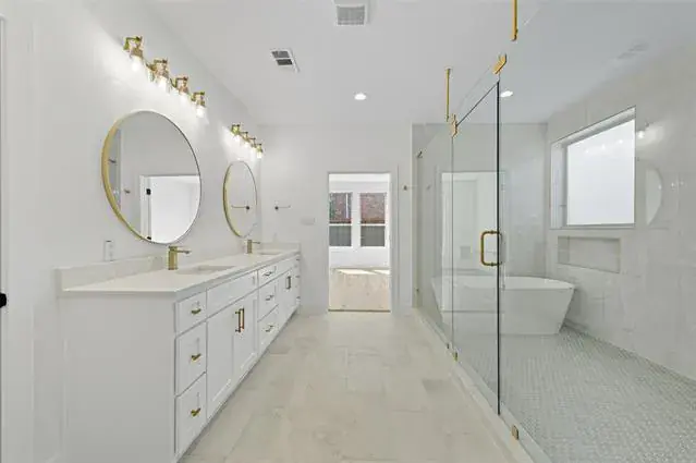 Builder offering Buyer $10,000 seller concessions. Nestled within a prestigious gated community, this exquisite modern estate spans 3,316 sq ft of architectural brilliance. Boasting 5 spacious bedrooms and 3.5 opulent bathrooms, every inch of this home exudes luxury. The master bath is a true showpiece, featuring gold fixtures and a Hollywood-inspired design, complete with a floating tub enclosed in a frameless shower. Oversized bedrooms provide unparalleled comfort, while a long catwalk upstairs overlooks the grand great room, leading to an expansive outdoor balcony.