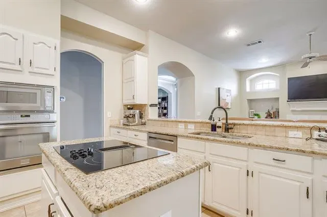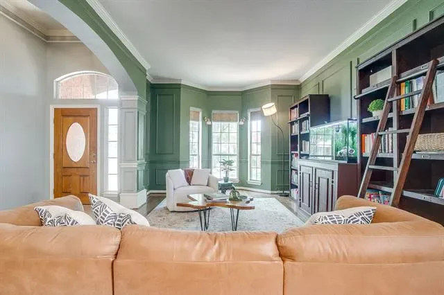 This beautiful 4-bedroom, 2-bath brick home is tucked away in the sought-after Wildflower Estates, a well-established neighborhood known for its charm and limited availability. Situated on a quiet cul-de-sac shaded by mature trees, this property offers a rare chance to own in one of Arlington’s most desirable communities. Inside, you’ll find a thoughtfully designed single-story layout with an easy, natural flow. The centerpiece of the home is a chef-inspired kitchen featuring a large island, extended bar-height seating, and an open connection to the main living area—ideal for hosting and everyday living. The formal living and dining spaces are filled with natural light, creating a warm and welcoming atmosphere. A bright sunroom leads out to an expansive covered patio, perfect for relaxing evenings or entertaining guests, all while enjoying a low-maintenance backyard. The spacious primary suite includes a jetted tub, separate shower, and walk-in closets for added comfort. The fourth bedroom provides flexibility as a home office or guest space. Additional features include elevated ceilings, crown molding, and a generous utility room. Conveniently located near the University of Texas at Arlington and just minutes from shopping, dining, and everyday essentials. Quiet, safe, and beautifully cared for—this is the kind of street that truly feels like home. Take one drive through the neighborhood, and you’ll understand why.