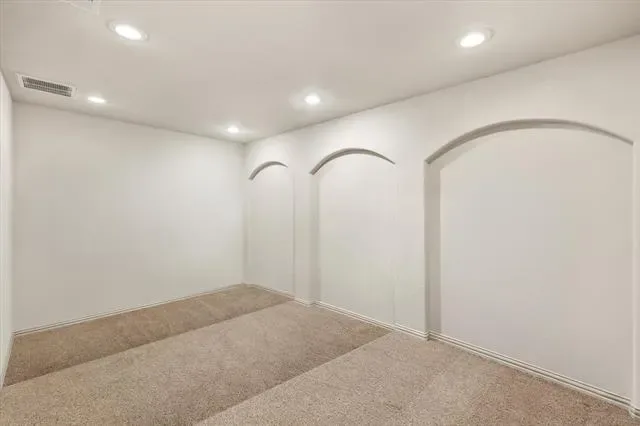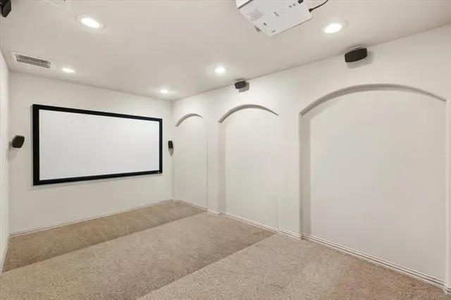 The primary suite, conveniently located on the main floor, provides a private retreat with an ensuite bath complete with a garden tub and separate shower. Upstairs, you’ll find three generously sized bedrooms, an additional living area, and a dedicated media room designed for an immersive movie experience, which could also serve as a golf simulator room or additional bonus space.