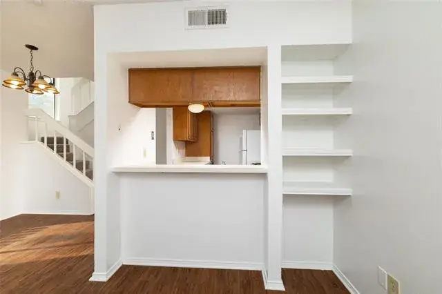 Step into a bright, open living space with soaring cathedral ceilings and a cozy brick fireplace. The kitchen with breakfast bar flow naturally toward your private, fenced courtyard—perfect for quiet mornings and a cup of coffee. Upstairs, both bedrooms offer large closets and share a full bath. The laundry room upstairs is a great convenience, and the appliances are included. Updates include luxury vinyl plank flooring, fresh paint, new carpet, and move-in ready finishes throughout.