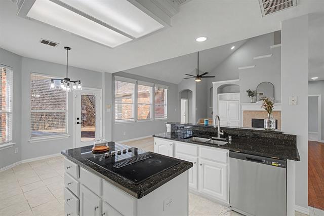 Welcome to 4706 Coventry located right off the highway nestled in a charming well-established neighborhood, beautiful treelines streets with amazing neighbors in the sought after Mansfield ISD! The home sits on .37 acres with 4 bedrooms, 3 FULL baths and 3 distinct living areas, creating a floor plan that tends to a variety of home activities. Downstairs offers the primary suite and an additional bedroom along with a full bath that can provide a wonderful option for an older parent, guests, or a private home office, while the expansive upstairs game room is ideal for keeping toys, games, and fun neatly in their separate spaces. Sunlight is no shortage here with many generously placed windows – no need to turn on lights during the day. All new carpet, updated lighting and hardware with fresh new paint throughout! The kitchen has rich dark granite countertops, abundant cabinetry, new built-in oven, microwave and dishwasher. Step outside and fall in love with the privacy from neighbors offered by the adjoining creek. Outback is the perfect spot to enjoy a refreshing drink while watching kids ‘shoot some hoop.’ The bigger of the two AC units have been replaced within the past few years along with a newer water heater. Electric gate adds extra security while the full driveway allows for up to 8 vehicle parking. Location here is hard to beat with the Parks Mall and I-20 only 3 mins away, centrally situated between Fort Worth and Dallas, for a an easy work commute. Tons of entertainment, shopping, and dining nearby, easily within walking distance. Your new home awaits!