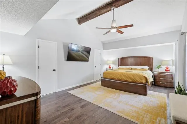 Designed with a desirable split-bedroom floor plan, the layout offers added privacy with the primary suite set apart from the secondary bedrooms. The spacious primary retreat features private side yard access to the pool area and an oversized ensuite bath with a separate seamless glass shower, dual closets, and a bright, airy feel.