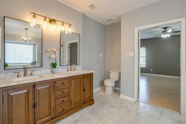 Welcome to this gorgeous home nestled on a quiet cul-de-sac with wonderful neighbors and just minutes from Stovall Park. This beautifully maintained home offers a functional layout with spaces designed for both everyday living and entertaining. Step inside to find a dedicated office with custom built-ins, perfect for working from home, along with a formal dining room ideal for hosting gatherings. The spacious family room features a cozy fireplace and flows seamlessly into the large kitchen with island, offering plenty of room for cooking and gathering. A separate utility room with cabinets and shelves adds convenience and extra storage. Retreat to the oversized primary suite, where elegant double doors open to a peaceful sanctuary. The stunning, renovated ensuite bath showcases a separate garden tub, frameless glass shower, and a massive walk-in closet with both his and her sides. Upstairs, you’ll find three additional generously sized bedrooms, offering flexibility for family, guests, or hobbies. Outside, enjoy a backyard built for play—complete with a storage shed and plenty of room to relax, entertain, or create your own outdoor oasis. With its prime cul-de-sac location, thoughtful layout, and proximity to parks and amenities, this home offers the perfect blend of comfort, style, and convenience—and is solidly built with durable brick and Hardie board siding, plus the added value of a 50-year roof.