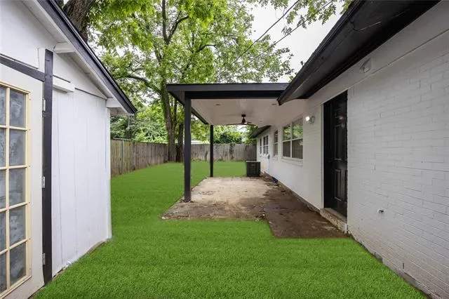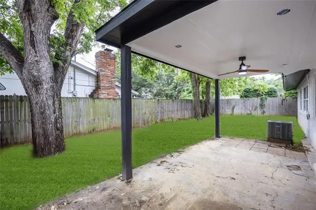 Both bathrooms have been tastefully updated with modern fixtures and designer tile, including a spacious walk in shower in the primary bath. Each bedroom offers ample space, natural light, and a clean, contemporary feel. Enjoy outdoor living with a covered back patio ideal for gatherings and a generously sized backyard with plenty of room to relax or play. Conveniently located just minutes from AT&'T Stadium, Globe Life Field, shopping, dining, and major highways, this home offers the perfect blend of style, comfort, and location.