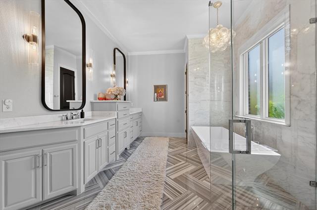 Nestled on a heavily wooded lot in Woodland Park, this stunning custom home offers over 3,400 square feet of living space with exceptional craftmanship throughout. Fully renovated in 2024 with all high-end finishes! French Oak floors throughout the downstairs. The kitchen boasts a 48-inch Electrolux Professional Gas Range, KitchenAid double convection ovens, 2 KitchenAid dishwashers, Vinotemp wine and beverage refrigerator, and a Brevelle microwave. A chefs dream! Large windows flood the home with natural light, highlighting the beautifully appointed fireplace framed by two French doors that open to a covered spacious patio. Designed with entertaining in mind, the outdoor living area features a newly completed outdoor kitchen making the outdoor dining effortless and inviting. Equipped with 36-inch Napoleon Grill with rotisserie and custom burners, 18-inch dual burners, and a 19-inch refrigerator. The open floor plan flows seamlessly, creating the perfect setting for gatherings both large and small. The primary suite is situated at the back of the home and opens to a fully renovated spa-like bathroom featuring an oversized glass shower, separate tub, and expansive his-and-her walk-in closets. The office located on the first floor is the perfect flex space for a bedroom, living or office. The Primary bedroom and living area are also equipped with motorized shades. Upstairs, three bedrooms open to a central game room, creating an ideal space for family or guests. A large bonus room above the garage offers flexibly as a media, theatre or playroom. Guest bath downstairs has marble flooring and marble countertops. Full walk-in attic, and sprinklers in the front and back yards. Loads of high-end upgrades with an unbeatable location next to the tennis courts and within walking distance to the park. Buyer to check Schools. Bailey, Young, Martin & Arlington all options. 3D Tour attached.