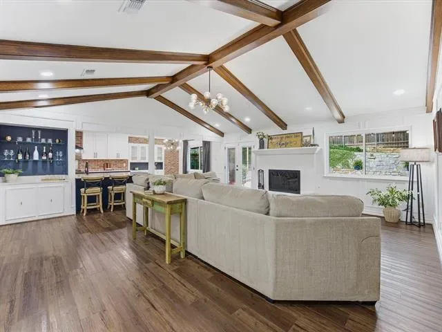 Nestled in the established Woodland Park Estates community, this meticulously maintained 1972 ranch-style residence offers 2,510 square feet of versatile living space with the added benefit of no HOA. The exterior features classic brick masonry and a durable, high-end metal roof, situated on a premier lot of over a quarter-acre with serene park views. You’ll love cooking in the updated kitchen equipped with elegant quartzite countertops, a top-of-the-line induction electric range, and an expansive walk-in pantry with matching cabinetry and stone surfaces. The interior is defined by an open-concept flow including a large living room, two dining areas, and a flexible bonus room perfectly suited for a home office, media room, or formal dining room. Notable features include a wood-burning fireplace and custom dry bar perfect for entertaining in the main living area, decorative lighting, and easy-to-maintain luxury vinyl and ceramic tile flooring throughout. The private backyard oasis features an inground pool, while the property provides ample parking via an attached two-car garage and a detached carport. Located less than a mile from the brand new, state-of-the-art ACTIV recreation center within the highly regarded Arlington ISD. If you’re looking for an active community surrounded by beautiful parks in the heart of DFW, then this one is for you!