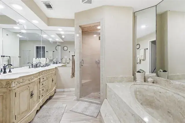 $65,000 in concessions towards upgrades. Rare, one-of-a-kind, resort-style lakefront retreat in the heart of the DFW Metroplex, tucked away on a quiet cul-de-sac and set on a beautifully landscaped .34-acre lot with direct frontage on a private lake and framed by 32 mature palm trees that create a serene, tropical atmosphere and everyday vacation vibes just minutes from town. Lush landscaping is irrigated directly from the lake, allowing you to enjoy stunning grounds without high water bills. Impressive open, light-filled living spaces designed for both everyday comfort and exceptional entertaining, including a grand living room and game room with panoramic lake views, custom wet bar, new wine fridge. The kitchen flows seamlessly into the den and formal dining area, making hosting family gatherings, dinner parties, and holidays effortless. The oversized primary suite serves as a private sanctuary with a spa-inspired bath and direct backyard access, perfect for enjoying peaceful mornings overlooking the pool, palms, and shimmering water. Step outside to your private oasis featuring a sparkling resort-style pool, flagstone decking and covered porch, expansive deck, private sauna with lighting and music, two powered gazebos, custom outdoor lighting, and breathtaking sunset views. This home offers peace of mind with a new Lennox HVAC system and condenser with 10 yr warranty, new roof, two 200-amp electrical panels, updated plumbing from meter to home, remodeled kitchen and downstairs areas, rod iron fencing, new front courtyard, 2 storage sheds including a greenhouse-style structure, 32 outdoor electrical outlets throughout yard & lakefront, custom outdoor lighting, and a 12-camera outdoor security system. An oversized three-car garage with a heated and air-conditioned half bath. More than a home, it’s a lakefront lifestyle offering luxury, privacy, and comfort, where every day feels like a retreat and opportunities like this rarely come to market.