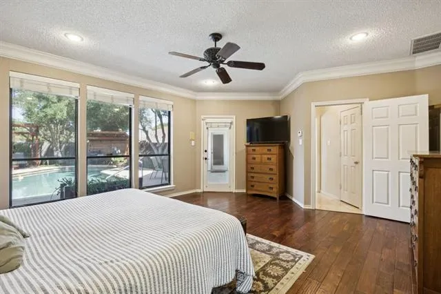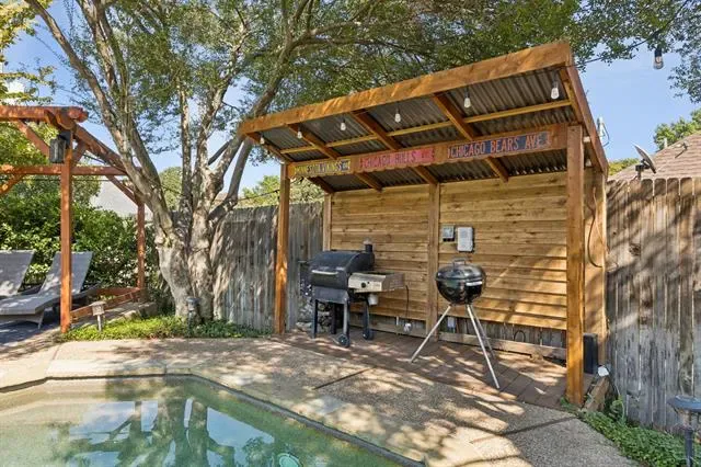 Welcome to 2424 Cross Timbers, a stunning four bedroom home situated on a beautiful corner lot in the desirable Woodridge Subdivision of Arlington! This residence blends elegance, comfort, and convenience, offering a thoughtfully designed floorplan with functional living spaces and modern updates. Inside, you’ll be greeted by gorgeous travertine flooring, decorative lighting and two spacious living areas with natural light. The open concept kitchen is a chef’s delight, featuring granite countertops, an electric cooktop, built-in oven, microwave and abundant cabinetry. A large breakfast area overlooks the backyard, making this space ideal for family gatherings or entertaining. The main level primary suite is a true retreat with hardwood floors, a peaceful sitting area, direct backyard access, and a luxurious en-suite bath complete with dual vanities, a garden tub, and separate shower. A convenient guest bedroom is also located downstairs, while two additional bedrooms upstairs provide flexibility for family, a home office, or guests. Step outside to your own private oasis featuring a sparkling pool, lush landscaping, and plenty of patio space – perfect for barbecues, pool parties, or relaxing in total privacy. The pool has a variable-speed pump less than a year old and the light was recently replaced with an LED bulb offering full color control. The sprinkler system is managed by a Wi-Fi controller for added ease. Several windows were replaced within the past year, ensuring energy efficiency and curb appeal, and the main water line from the city to the house was replaced approximately three years ago. The three-car garage and corner lot provide ample storage and impressive curb presence. Living in Woodridge means enjoying a vibrant neighborhood in the heart of Arlington, just minutes from shopping, dining, and entertainment, plus AT&'T Stadium, Globe Life Field, and Six Flags Over Texas, nearby parks, golf courses and Joe Pool Lake.