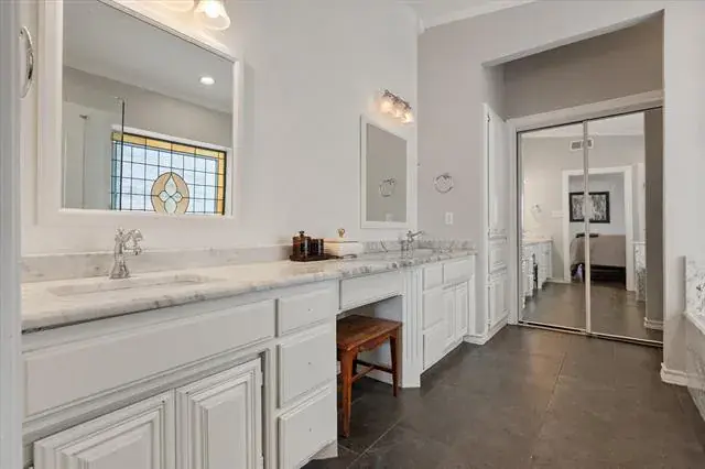 This property will not go FHA or VA. Needs repairs. FHA 203k, conventional, or cash only. Impressive traditional home offers 4 bedrooms, 3.5 baths, 2 spacious living areas, 2 dining spaces and oversized side-entry garage w additional parking for boat or 2 cars. Property stands out for flexible layout, tasteful architectural details and quality of natural light throughout. From the moment you arrive' freshly updated exterior, painted brick façade and stately entry set warm, refined tone. Welcoming foyer features tile floors, stylish chandelier and open flow to formal living and dining spaces. Tall windows, elegant molding and rich wood flooring enhance home’s character while creating bright, inviting gathering areas. Main living room offers striking focal point w double-sided tile and brick fireplace – open to both living spaces – and well-appointed wet bar w wine storage. Large picture windows frame views of backyard and allow light to spill in, highlighting high ceilings and custom trim work. Adjacent is second living area that provides flexibility for a study, music room or formal entertaining. Kitchen delivers style and function w dramatic backsplash, farmhouse sink and spacious breakfast area. Whether cooking daily meals or preparing for gatherings' this layout offers convenience and connection to main living spaces. First-floor primary suite is standout feature – generous in size w sitting area, backyard access and walk-in closet. Ensuite bath includes dual sinks, garden tub, separate shower and beautiful stained-glass window that elevates space w warmth and charm. Upstairs, 3 well-sized bedrooms offer flexible use for guests, family, multi-generational living or home office setup. Outside, covered patio and fenced yard create peaceful space for morning coffee, grilling or outdoor entertaining. W NO HOA and close proximity to dining, shopping, parks and major commuter routes' home delivers convenience and architectural character alongside comfort.