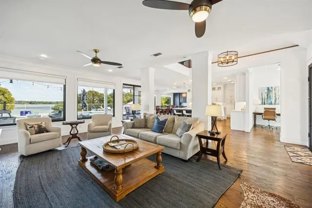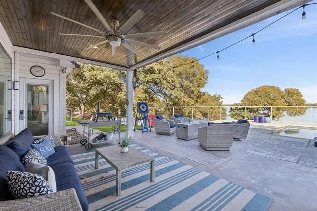 Rare opportunity to own a gated waterfront estate on Eagle Mountain Lake with over a 150 ft. of unobstructed lakefront views. Enjoy unforgettable sunrises and breathtaking water views from every room of this modern lake house, nestled among mature trees on over an acre just 1 hour from Dallas &' 45 minutes from Fort Worth. Arrive through a gated entry &' circular drive to soaring ceilings, designer finishes throughout, and floor-to-ceiling windows that frame the lake at every turn. The chef''s kitchen features Thermador appliances, Jenn-Air commercial induction range, warming drawer, nugget ice maker, &' butler''s pantry with wine fridge, dishwasher, &' sink. The first-floor primary suite is a true retreat — luxurious ensuite with soaking tub, oversized shower, &' walk-in closets, all with serene lake views. Upstairs: a spacious living area, three bedrooms — one with a private ensuite &' two with a Jack-and-Jill bath — plus an oversized balcony overlooking the water. The guest house offers one bedroom, full kitchen, living &' dining area, attached garage, &' private deck with lake views. Step outside to a resort-style backyard — sparkling pool &' spa, expansive covered patio perfect for outdoor dining &' entertaining, &' fire pit. Your private dock features both boat &' jet ski lifts with direct open-water access. Smart home thermostats &' locks, new HVAC, pool &' spa heater, tankless water heater &' more — full upgrade list available. Currently operating as a successful short-term rental — this exceptional property offers both a luxurious lifestyle &' appealing investment opportunity. No HOA. Income history available upon request. Furnishings, watercraft &' all contents available for purchase making it as turnkey as it gets. Don''t miss your chance to own this one-of-a-kind waterfront retreat.
