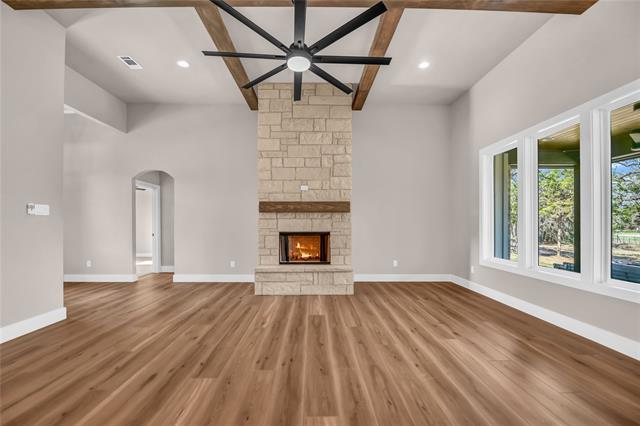 Beautiful new build on a premium wooded lot. 4 bedroom or 3 bedrooms with an office. Home includes landscaping, sprinkler system, accent lighting, 30 yr shingles, double doors, black windows, stamped patios, wood patio ceilings, fireplace, double ovens, soft close hinges, farmhouse sink, working pantry, drawer microwave, under cabinet lighting, quartz countertops, Eat in island, crown molding, ceiling, beams, freestanding tub, spray foam insulation, heat pump, multi-speed air handler, hot water circulation system. Upgraded lighting. House is a must see. Expected completion date middle to end of February. Agent related to seller.
