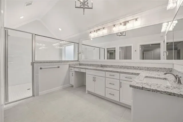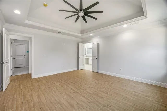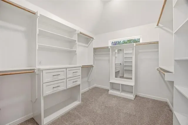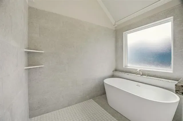 The spacious primary suite serves as a true retreat. The standout feature is the spa-inspired primary bathroom, designed with a stunning wet room concept that includes a massive walk-in shower and a freestanding soaking tub within the same enclosed space — creating a luxurious, high-end feel typically found in custom homes.