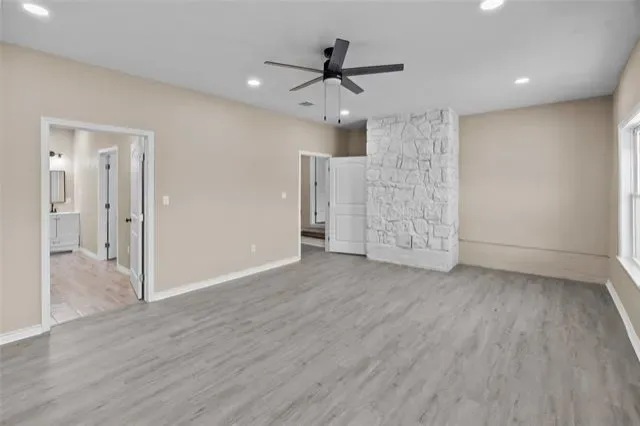 The main residence has been thoughtfully updated from top to bottom, featuring open, light-filled living spaces, durable wood-look flooring, fresh neutral tones, and stylish fixtures throughout. The gorgeous kitchen is a true centerpiece with crisp white cabinetry, granite countertops, stainless steel appliances, and an oversized island perfect for entertaining or everyday living. Spacious bedrooms and fully renovated bathrooms provide comfort and functionality, while the open-concept layout flows seamlessly into the living area, highlighted by a cozy stone fireplace.
