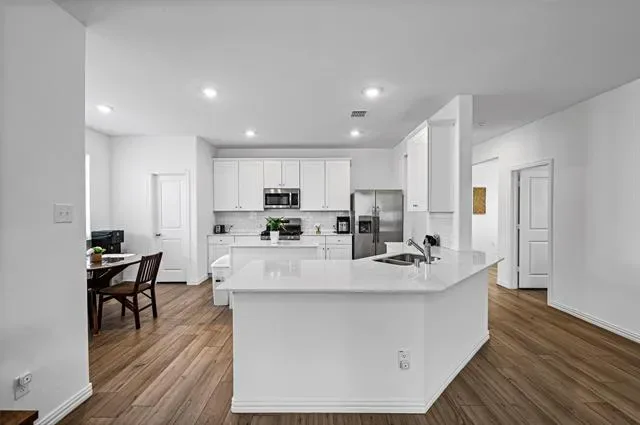 WONDERFUL HOME IN LIKE NEW CONDITION AND PRICED TO SELL! This beauty was built in 2024, and has a large open floor plan, which works great for entertaining, with 10′ ceilings, all on a single story! The large kitchen is open to the family living area and breakfast area, has granite countertops, stainless appliance, and an island! The master is spacious and has double sinks, and a separate shower! The home includes two dining areas, one of which could be used as a separate office or den if desired. There is a nice sized, flat backyard, great for kids or pets! The home is in excellent move-in condition! Wonderful neighborhood.