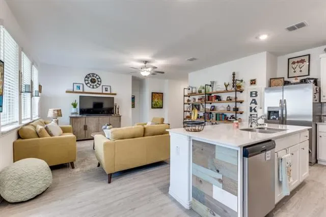 The kitchen opens directly to the main living area, making it the heart of the home and an ideal place to gather with family and friends. Built with efficiency in mind, the home also includes a tankless water heater and energy-efficient features, helping keep utility costs manageable while providing modern comfort.