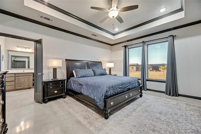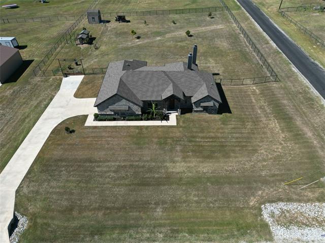 Comfort upgrades include ceramic tinting on west-facing windows for temperature control and UV protection, energy-efficient windows, and a smart garage opener. Secondary bedrooms allow flexible use, including a front office option. Exterior enhancements elevate daily living—a powered shed with electric, custom chicken coop, chopped-wood shelter, and a fully pipe-fenced backyard with sprinkler system. A covered patio with an outdoor wood-burning fireplace sets the stage for dining or evening relaxation with Texas sunset views. Durable stained concrete flooring and granite surfaces throughout provide low-maintenance longevity. No HOA and ample space for trailers, boats, or a small RV. High-speed internet available. Close to local coffee shops, groceries, and parks—Texas Drip Coffee (0.7 mi), Pro Liberate Coffee Co (1.3 mi), Briar Hill Grocery (0.7 mi), Albertsons (3.7 mi), Walmart Supercenter (4.5 mi), and Shady Grove Park on Eagle Mountain Lake (3.8 mi). Easy access to TX-199 for commuting to Fort Worth or Weatherford. Modern craftsmanship. Acreage living. Endless Texas charm.