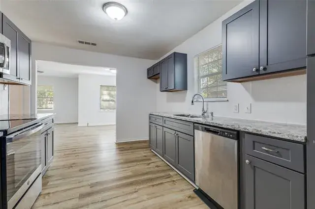 Own your own home by the lake! Just minutes from Eagle Mountain lake, this updated house is ready to be made into a home. Recently remodeled kitchen with classic shaker cabinets and beautiful quartz countertops, this galley-style kitchen is undeniably the heart of the home! Spacious with plenty of natural light, this kitchen has been designed to provide a top-notch cooking experience for your home chef! Full size utility room leading to the spacious fenced in backyard, which features a large shed, sitting on an oversized concrete pad for outdoor gatherings. The huge lot also has space for anything your mind can think of, right behind the backyard. The possibilities are endless.