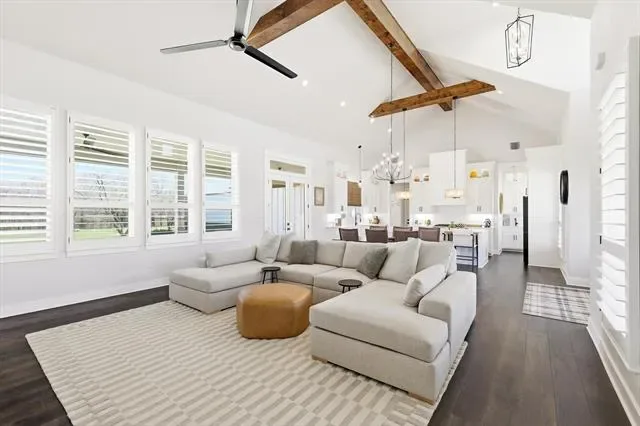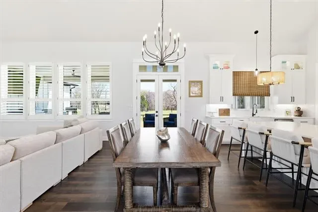 Welcome to the perfect blend of modern farmhouse charm and country space on over 2 beautiful acres within a gated community. This thoughtfully designed home offers a warm, inviting interior with stunning vaulted ceilings and natural light throughout. The gorgeous kitchen features a window overlooking the peaceful backyard and seasonal creek, creating the perfect view while cooking or entertaining. Gas stove, large island and a wet bar off of the kitchen with tons of storage throughout.