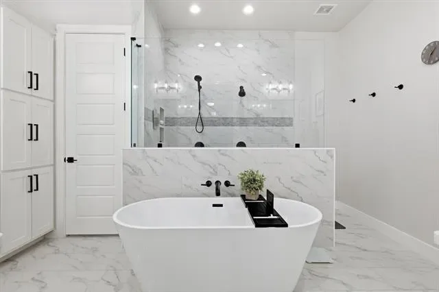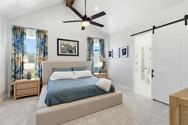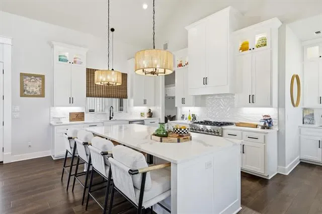 The luxurious primary suite includes an amazing spa-like bath designed for comfort and relaxation. Step outside to enjoy the outdoor kitchen and patio area, with a convenient fenced dog run nearby.