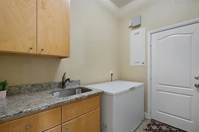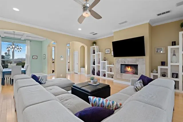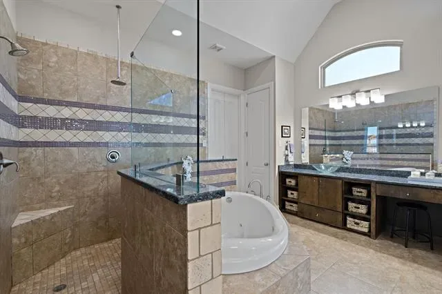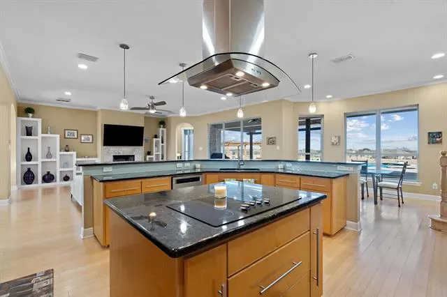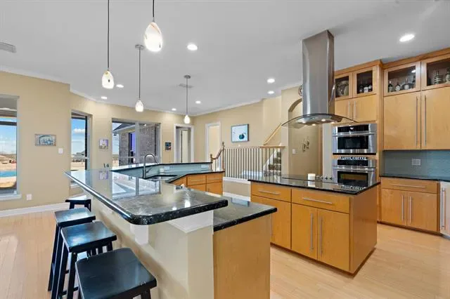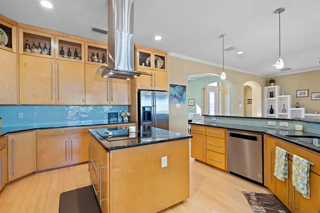 Built-in Features, Built-in Wine Cooler, Cable TV Available, Cathedral Ceiling(s), Decorative Lighting, Double Vanity, Eat-in Kitchen, Granite Counters, High Speed Internet Available, Kitchen Island, Natural Woodwork, Open Floorplan, Pantry, Sound System Wiring, Walk- In Closet(s), Second Primary Bedroom