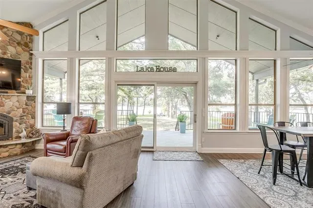 Back on market!! Previous buyer unable to sell their home within the contingency period, no fault of the property. This stunning (+-) 4.25 acre Eagle Mountain lakefront estate is once again available and ready for its next chapter! Discover the breathtaking beauty of this gated estate on the serene shores of Eagle Mountain Lake. Step into a fully remodeled open-concept lower level, where the spacious sunlit kitchen features a grand center island and breakfast bar. Expansive windows offer panoramic views of the lake and mature shade trees. The primary suite is on the lower level, while upstairs includes a second living area, and three additional bedrooms. Relax and entertain year-round on the wrap-around covered deck. The covered boat dock, built in 2020 and equipped with lifts, provides easy lake access with water depths of 5 feet at the end and 3 feet at the front when the lake is full. Highlights include a 40''x50'' metal building with electricity, fruit trees, and a yard game area. A few recent updates include: AC and water heater (4 years old), roof (7 years old), new gutters with leaf filter &' more. Full List of improvements available in documents! Embrace limitless potential from lakeside living with no HOA or animal restrictions (bring a couple of horses, a few cows, or simply soak in the peace and privacy). DON''T NEED ALL 4.25 ACRES? There’s ample road frontage to subdivide and sell off a 2 (+-) acre parcel while still keeping your own private gated drive leading to the lakefront home, shop and boat dock! GREAT INVESTMENT OPPORTUNITY! Whether seeking a place to call home, weekend escape or a venue opportunity, embrace the freedom to indulge in your passions with the limitless opportunities for recreation and relaxation this property presents.