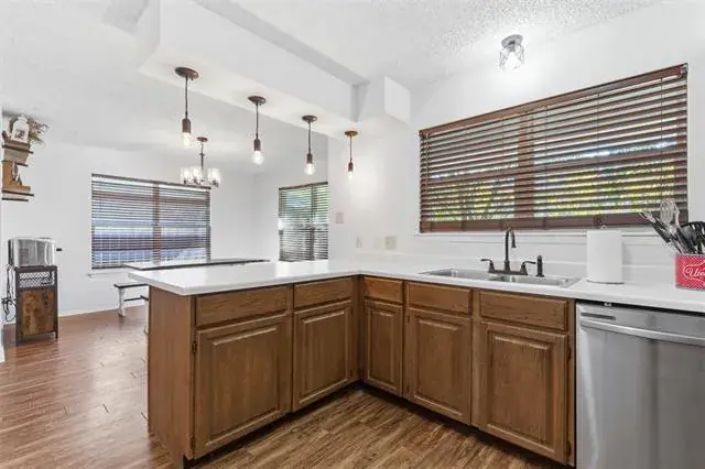 Down a quiet street in Azle, this home is awaiting its new owner! This home is only minutes from the main intersection of town which makes is as convenient as it gets. Whether you’re looking to head into Fort Worth, or shop in Weatherford, you’ll be there in no time. This well taken care of home has a neutral pallet of colors except for accent walls in two bedrooms, giving them their own flare! No carpet means this house is an easy keeper with kiddos and pets. Bring your big couch because this living room is a great spot to catch the game, or host your holiday get togethers, while the eat-in kitchen houses a large enough space for family dinner. The tall privacy fence lining the large backyard is perfect for playtime or hosting an outdoor evening fire this fall! Modern updates have been made to the two full baths that have brought them to life! The front bedroom is great for a home office with the large front windows, as the other bedroom is next to the primary bedroom. This home has charm, pride of ownership and original quality of build that makes it great for the next owner.