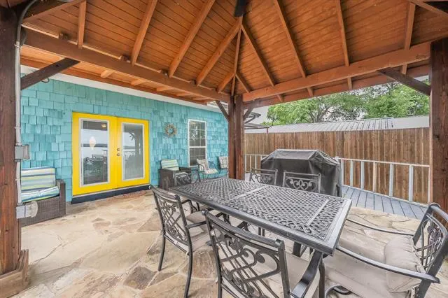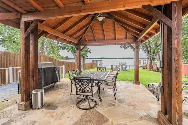 Covered Patio/Porch, Dock, Fire Pit, Rain Gutters, Lighting, Outdoor Grill, Private Yard