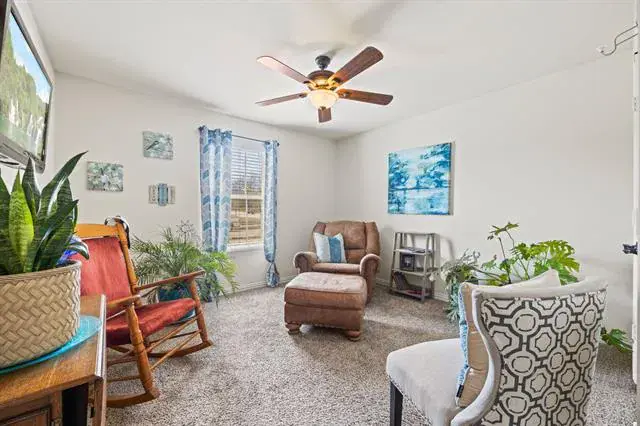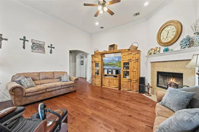 This wonderful home seamlessly blends sophistication and functionality. Kitchen opens to a spacious family room, perfect for entertaining, and features a grand island with granite countertops, a large pantry, and plenty of cabinetry. Friends and family will enjoy a warm and inviting atmosphere created by the wood burning fireplace. Ample windows brighten each day with natural light. The home offie accommodates with functionality and roominess. The split bedroom (4 bedroom) design provides privacy and flexibility for various living arrangements. Plenty of storage throughout ensures a clutter-free living space. Step into the backyard and be surrounded by privacy fence without any other homes behind, which enhances seclusion making it ready for outdoor living. Only 5.2 miles away from the lake, take advantage of launching your boat at Eagle Mountain Marina or swim sandy beaches at Twin Points Beach. Book your showing now!