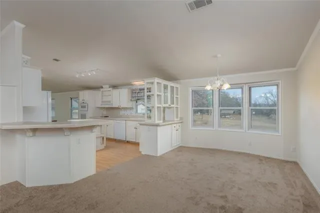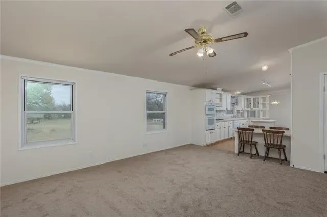 Seller offering credit toward buyer closing costs! Nestled on 1.033 acres of serene countryside, this move-in ready 3-bedroom, 2-bath home offers the perfect blend of space, comfort, and privacy. Designed for both everyday living and entertaining, the home features two spacious living areas, a dedicated dining area, and a well-appointed kitchen with abundant counter space, a center island, built-in table, walk-in pantry, and refrigerator. The large primary suite is thoughtfully split from the secondary bedrooms, all of which include walk-in closets. A generous utility room offers added functionality with cabinetry and room for additional storage. Step outside and enjoy the peaceful surroundings from the huge covered porch, perfect for relaxing and taking in the country views. The property boasts impressive outbuildings, including a 24×48 detached garage with three roll-up doors, an additional workshop with two roll-up doors, and an underground storm cellar. Additional amenities include a greenhouse, RV cover, and a back patio prepped with hookups ready for a hot tub. Mature trees add beauty and shade to the landscape. Recent updates include interior paint, carpet, updated faucets and bathroom sinks, and windows. If you’re looking for peace, privacy, and room to spread out, this serene country property checks all the boxes.