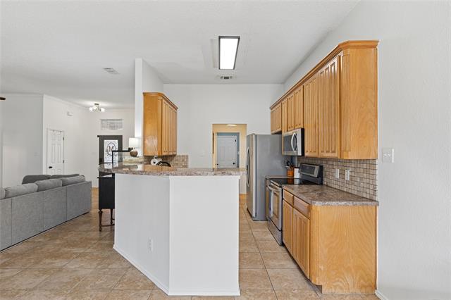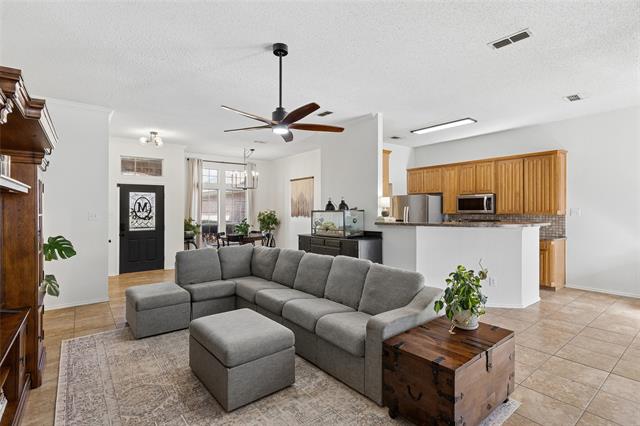 Lovingly maintained and updated, this home is nestled amongst mature trees in an established neighborhood with no HOA. Inside you will find updates that include carpet, both bathrooms remodeled and updated, water heater 2024, HVAC 2020, new door handles and light fixtures. The open floor plan provides a seamless transition between living areas. The living room has a gas start wood burning brick fireplace. Kitchen has stainless appliances, tile backsplash and a breakfast bar. The primary bedroom is split from the secondary bedrooms. Master bath was completely remodeled. As you step outdoors you are greeted with a private backyard with a large covered and extended open patio. There is a seasonal creek in the very back of the property. The side of the house inside the gate is an area for a boat or small RV camper. Easy access to highways, schools, shopping and minutes from Eagle Mountain Lake.