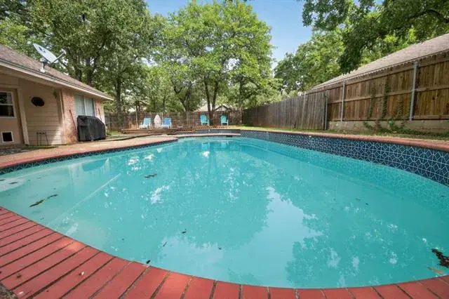 Back on Market, buyers terminated due to circumstance change. All brick home, with New 16 SEER Energy star AC installed 7-2025 (10-10-5 warranty). Out back a large, sparkling blue pool is waiting for your friends and family to enjoy some refreshing fun! Plentifully shade trees, privacy fence, flagstone patio area and bi-level wood deck maximize this spacious backyard’s outdoor living space. Inside the fireplace will keep you cozy when it’s chilly outside. Kitchen was fully remodeled in 2015 with new cabinets galore, countertops, sinks, backsplash, flooring, dine-in island added wi butcher block top and storage below, new paint, lighting, ceiling fan and upgraded Whirlpool appliances in 2016. In 2014 guest bath (and laundry) were updated with paint, tile floor, extra storage, new toilets in both baths, Master en-suite bath fully remodeled with dual vanities, tiled walk-in shower big enough for 2, oversized porcelain-on-cast iron clawfoot soaking tub that will stay hot for long soaks, ceiling fan and mirrors added, tile floor. Flooring, paint, light fixtures and ceiling fans were updated in Master bedroom, living and dining rooms in 2015' guest bedrooms painted 2021. 10’ ceilings create a spacious, airy ambience with 16 windows in 7 main rooms to provide abundant natural light. The sprinkler system simplifies lawn care and home has a large corner lot. Others at this price point and size don’t compare. This home is special and deserves to be seen in person.