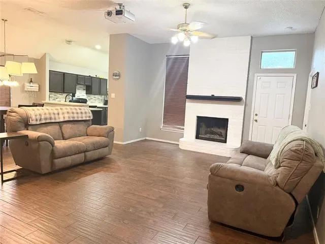 MULTIPLE OFFERS – highest and best due by 5pm Sunday April 19th. Welcome to this beautifully updated 3-bedroom, 2-bath home in the heart of Azle, where comfort, space, and thoughtful upgrades come together seamessly. The functional floor plan offers easy flow with no wasted space, making it perfect for everyday living and entertaining. The home features a fully remodeled guest bathroom, new tile flooring in the kitchen, and brand new carpet just installed in the bedrooms for the next owners. The living room showcases wood flooring, and includes a large projector setup, creating the perfect space for relaxing or hosting movie nights. The primary suite offers a walk-in closet and a comfortable retreat at the end of the day with garden tub. Additional features include a Google Nest thermostat, smart pin code front door lock, and a carbon monoxide monitor for added peace of mind. The HVAC system has also been updated in 2025. Step outside onto the back patio and see the huge backyard on this .24 acre lot surrounded by mature trees, offering shade and privacy. New fencing just added. Easy access to major highways for commuting to Fort Worth or I-35. This is a move-in ready opportunity! Come take a look and see why Azle contines to be a great place to call home!