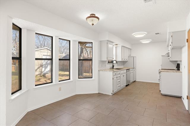 This charming established neighborhood in Azle is waiting to welcome you home. New interior paint and carpet make this house feel fresh. Step inside to a spacious living area with great vaulted ceiling with beam. The fireplace is a stunning feature that anchors this big room. Connected to this great room is a dining room and updated kitchen. Granite countertops offer generous counter space. Stainless range and dishwasher keep the kitchen feeling sleek and modern. The primary bedroom is spacious and has an ensuite bath. Two nice sized guest bedrooms offer walk in closets. These bedrooms share a full hall bath. The backyard has a large cedar fence for privacy and a wonderful covered porch. The big shed in backyard has a ton of storage or will be a workspace. Come enjoy all this house has to offer. Buyer and buyers’ agent to verify all information provided. Agent is related to seller.