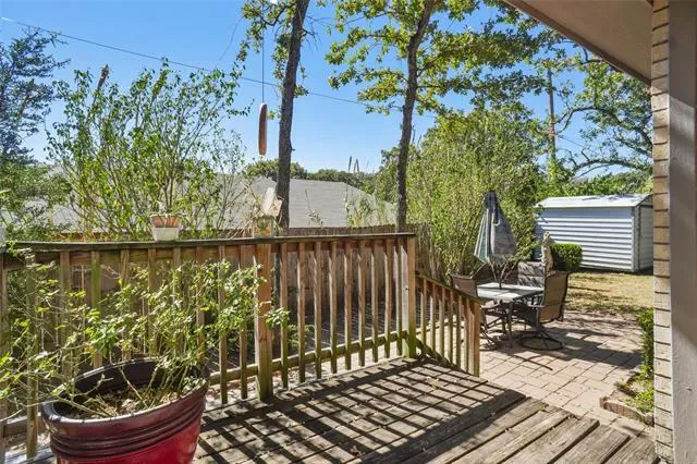 OPEN HOUSE SUNDAY JAN. 11 1:00-3:00. Come take a look at this inviting 3 bedroom, 2 bath residence with a private office, offering a smart and flexible layout for everyday living and entertaining. Step into the spacious living room, complete with a cozy wood burning fireplace, perfect for gathering on cool evenings. An additional living area, finished with luxury vinyl plank flooring, provides an ideal space for a game room, media room, or spacious entertainment area with views of the backyard. The primary suite features its own ensuite bath with a walk in tiled shower and a generous walk in closet. Just beyond the primary bedroom, you’ll find a private office or media room, offering direct access to the back patio, perfect for working from home or enjoying some quiet retreat space. The home features a split bedroom design with a lovely bath equipped with a walk in tiled shower in between the secondary bedrooms. The kitchen boasts granite countertops, a convenient breakfast bar, and a layout that flows easily into the living spaces. Outside, the backyard oasis is fully fenced for privacy and features a wood deck and patio, ideal for outdoor dining and gatherings. A Morgan storage building offers additional utility space, while tall mature trees provide shade and a picturesque backdrop.