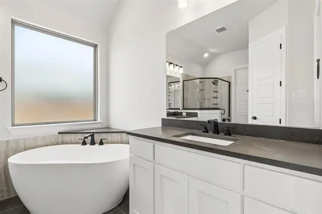 MLS# 21140938 – Built by Chesmar Homes – Ready Now! ~ This stunning single-family residence in Lakeview Heights offers 4 spacious primary bedrooms and 3 full and 1 half bath, across 2,648 square feet of modern living space. Built in 2025, this home features an open floorplan with vaulted ceilings, decorative lighting, and an eat-in kitchen equipped with a gorgeous central location with double islands and pantry. The family room boasts a gas fireplace, enhancing the inviting atmosphere. Enjoy outdoor living on the covered patio in a large private yard with a sprinkler system and beautiful landscaping. Additional highlights include a three-car garage, smart home features, and high-speed internet availability. Located within the highly regarded Azle ISD, with Hilltop Elementary and Azle High School nearby. Completion is estimated for March 27, 2026. Experience comfortable and stylish living in this exceptional property.
