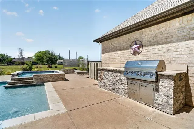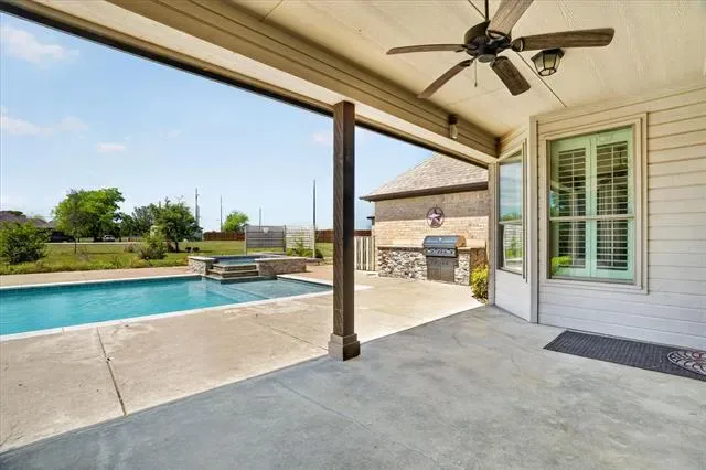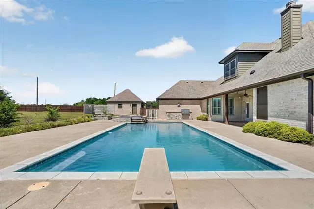 Step outside to a backyard built for entertaining, complete with a PebbleTec diving pool, spa, outdoor kitchen, and fire pit. A large concrete pad provides space for RV or boat parking, in addition to a 5-car garage and extra parking.