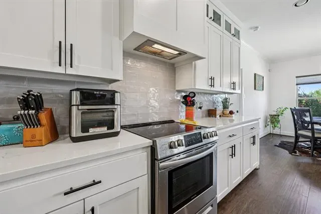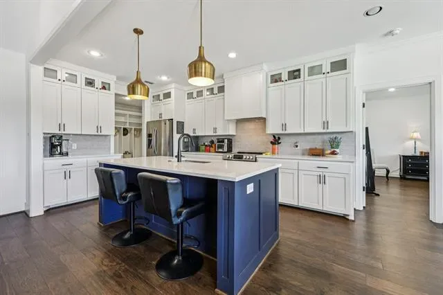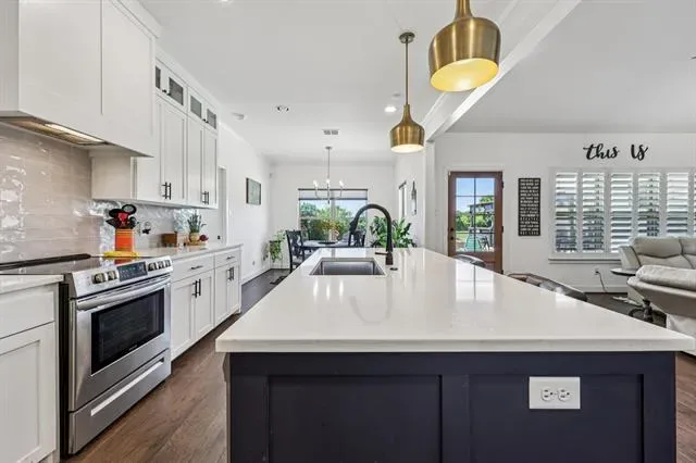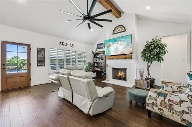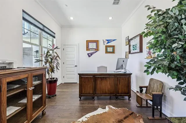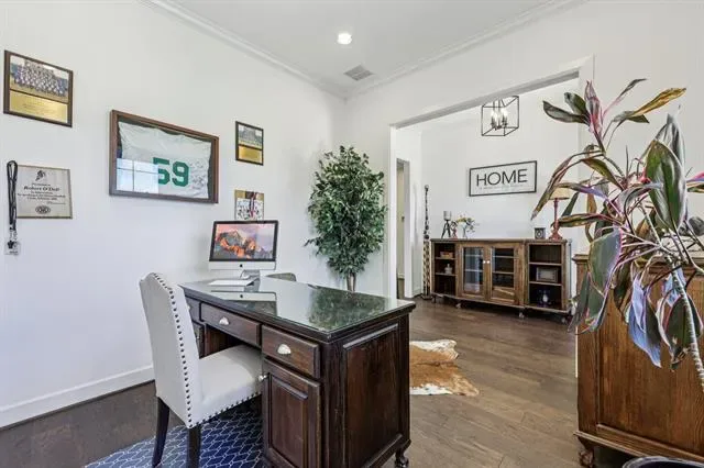 The layout includes a dedicated office, plus a spacious mudroom with built-ins &' an oversized laundry room with cabinetry &' dual countertops. The engineered wood flooring throughout the main areas (no carpet) &' tile in wet spaces provide durability &' easy maintenance. Designed for gathering, the home flows from indoor living to the backyard, where a heated pool &' spa, fire pit &' multiple seating areas create an outdoor retreat. The 24×30 barn-style structure with a 6-ft overhang provides a shaded space for relaxing &' entertaining.