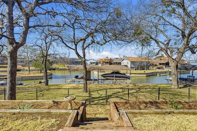 Experience refined lakefront living in the prestigious Oak Harbor Estates on Eagle Mountain Lake. Located at 1825 Spinnaker in Azle, this 3,751 square foot waterfront residence offers 4 bedrooms, 3.5 baths, multiple living and dining areas, private dock access, and sweeping open-water views. A dramatic two-story wall of windows anchors the main living space, filling the home with natural light and showcasing stunning lake vistas. Designed with entertaining in mind, the open-concept layout flows seamlessly into the spacious kitchen featuring stainless steel appliances, abundant cabinetry, and a butler’s pantry with wine refrigerator for effortless hosting. Surround sound and built-in speakers enhance the main living area, while the dedicated home theatre with floor lighting creates an authentic cinematic experience. A Remy full-home air purification system adds year-round comfort. The expansive primary suite overlooks the water and offers a private sitting area ideal for a home office or quiet retreat. The ensuite bath is generously appointed, and the oversized closet includes a built-in dressing area. Upstairs bedrooms and additional living space provide flexibility for family and guests. The 3-car garage includes an office area and extra storage, perfect for lake equipment and hobbies. Step outside to your private boat dock with lift and enjoy immediate access to Eagle Mountain Lake. A Clearlight Sauna and a 2005 Four Winns Funship 23.8-foot deck boat with very low hours convey, making this a true turnkey lake retreat from day one. Morning coffee by the water, afternoon cruising, and sunset gatherings are all part of the lifestyle. An exceptional waterfront home designed for comfort, entertaining, and effortless lake living. Schedule your private showing today and secure your place on the lake before summer arrives.