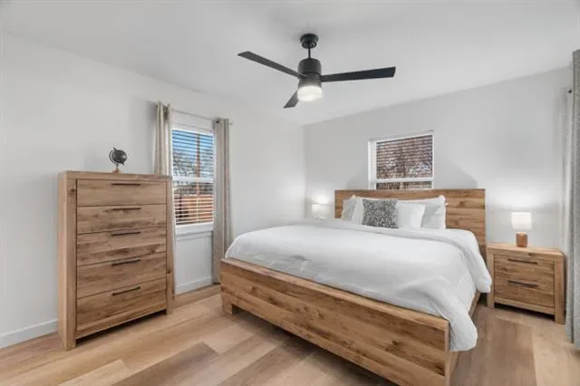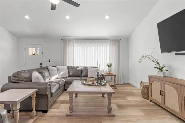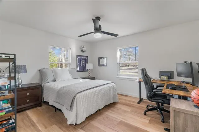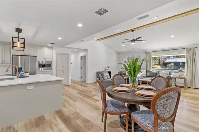 Completely updated in 2024 from the ground up, this move-in ready home features high ceilings that create an open, airy feel throughout. The thoughtfully designed layout includes two primary suites, offering incredible flexibility for multi-generational living, guests, or a private home office setup. The heart of the home shines with brand-new stainless steel appliances, sleek finishes, and durable luxury vinyl plank flooring that flows seamlessly throughout the main living spaces. Every detail has been refreshed to provide a clean, modern aesthetic while maintaining a warm and inviting atmosphere. Step outside to enjoy a covered back patio, perfect for relaxing evenings or entertaining with friends and family. The large driveway and attached 2-car garage provide ample parking and convenience. With its extensive 2024 renovations, functional floor plan, no HOA, and prime location, this home offers the perfect blend of style, space, and practicality.